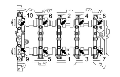 Retighten the cylinder head bolts by additional 90° and one more additional 45° as shown in the illustration.