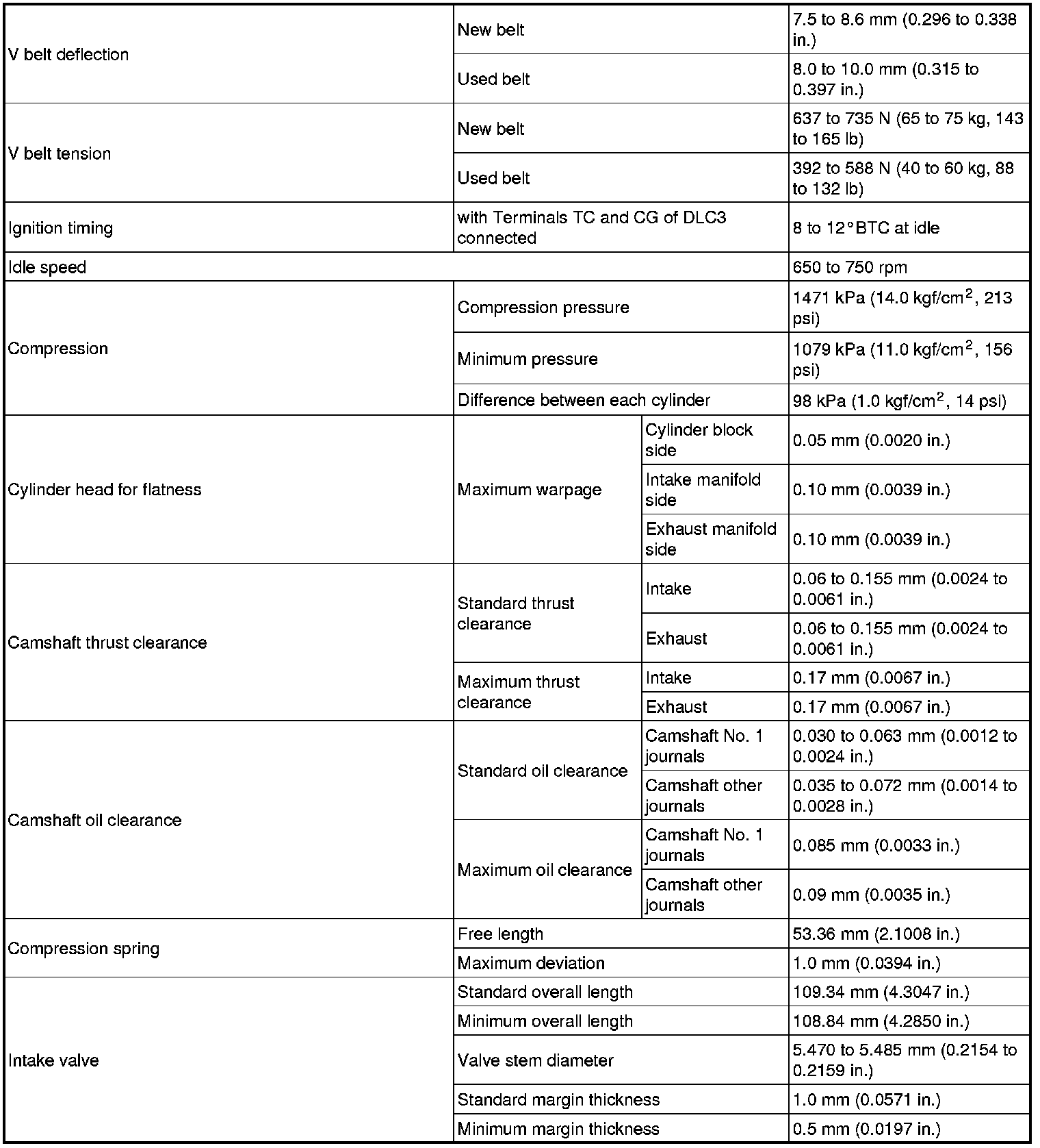 SERVICE SPECIFICATIONS: 2ZR-FE ENGINE MECHANICAL: SERVICE DATA