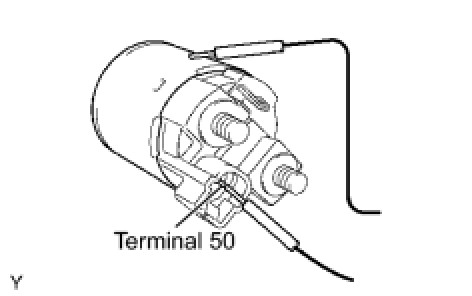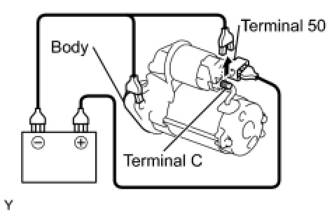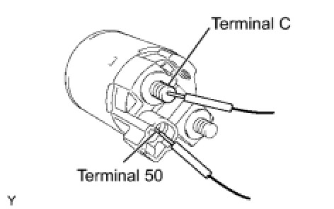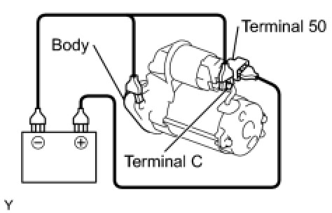 (1) Disconnect the negative (-) lead from terminal C. Check that the pinion gear remains out.