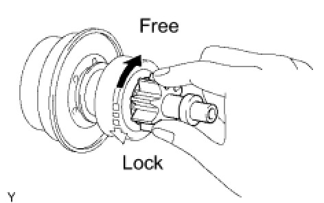 (1) Rotate the clutch pinion gear clockwise and check that it turns freely. Try to rotate the clutch pinion gear counterclockwise and check that it locks.