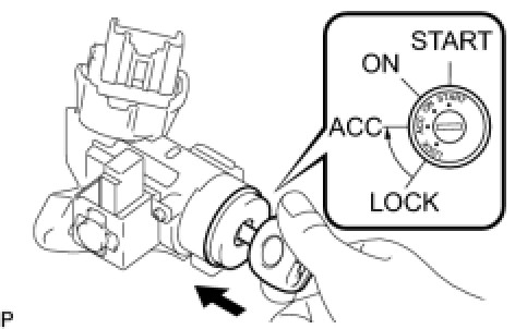 (b) Insert the key, turn the ignition switch to ACC and check that the steering lock function has been deactivated.