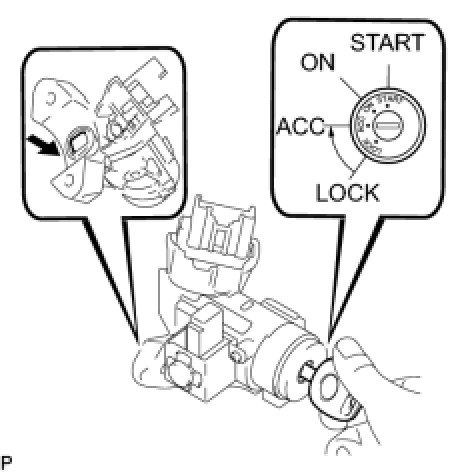 (c) Make sure that the ignition switch lock cylinder assembly is securely fixed onto the ignition switch lock cylinder assembly.