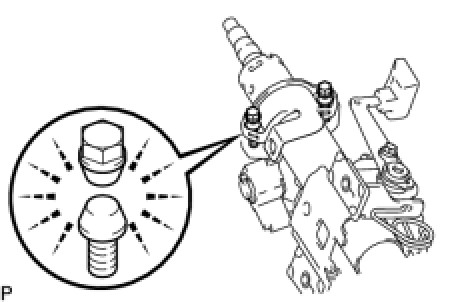 (b) Install the steering column upper with switch bracket assembly and steering column clamp upper with 2 new steering lock set bolts, and then tighten the bolts until their heads come off.