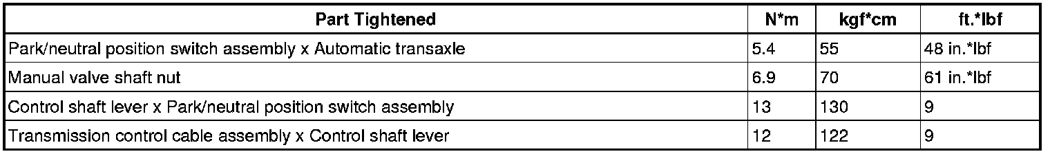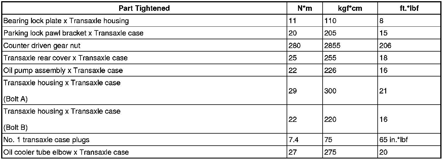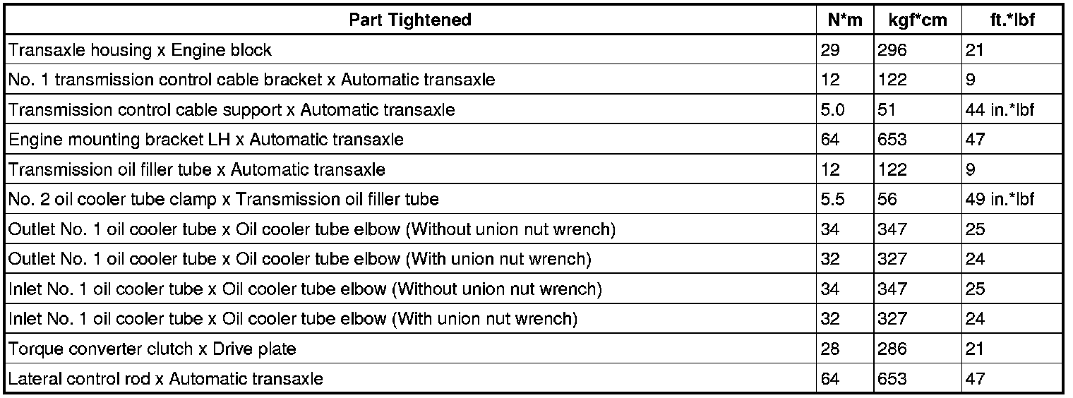 SERVICE SPECIFICATIONS: U341E AUTOMATIC TRANSAXLE: TORQUE SPECIFICATIONS