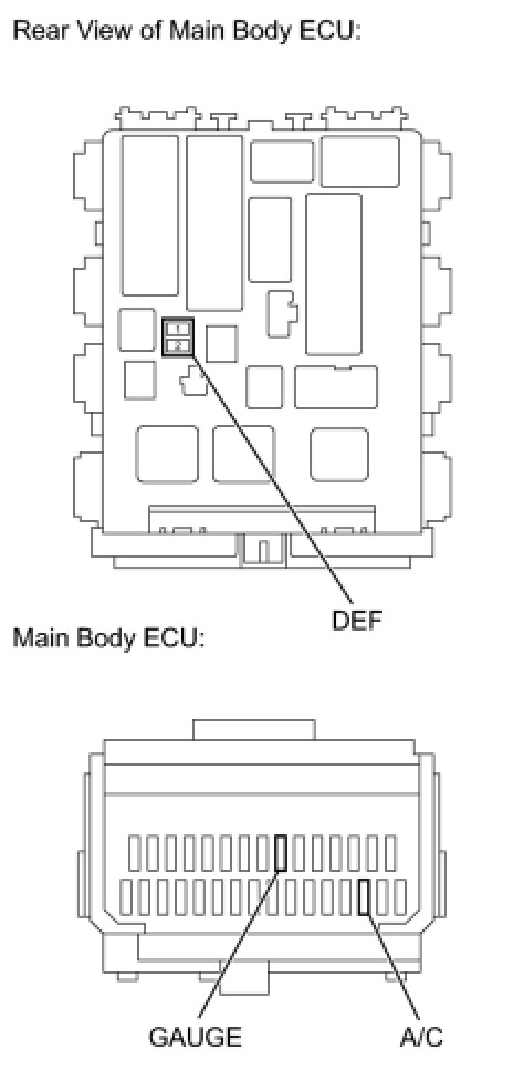 (a) Remove the DEF, GAUGE and A/C fuses from the main body ECU.