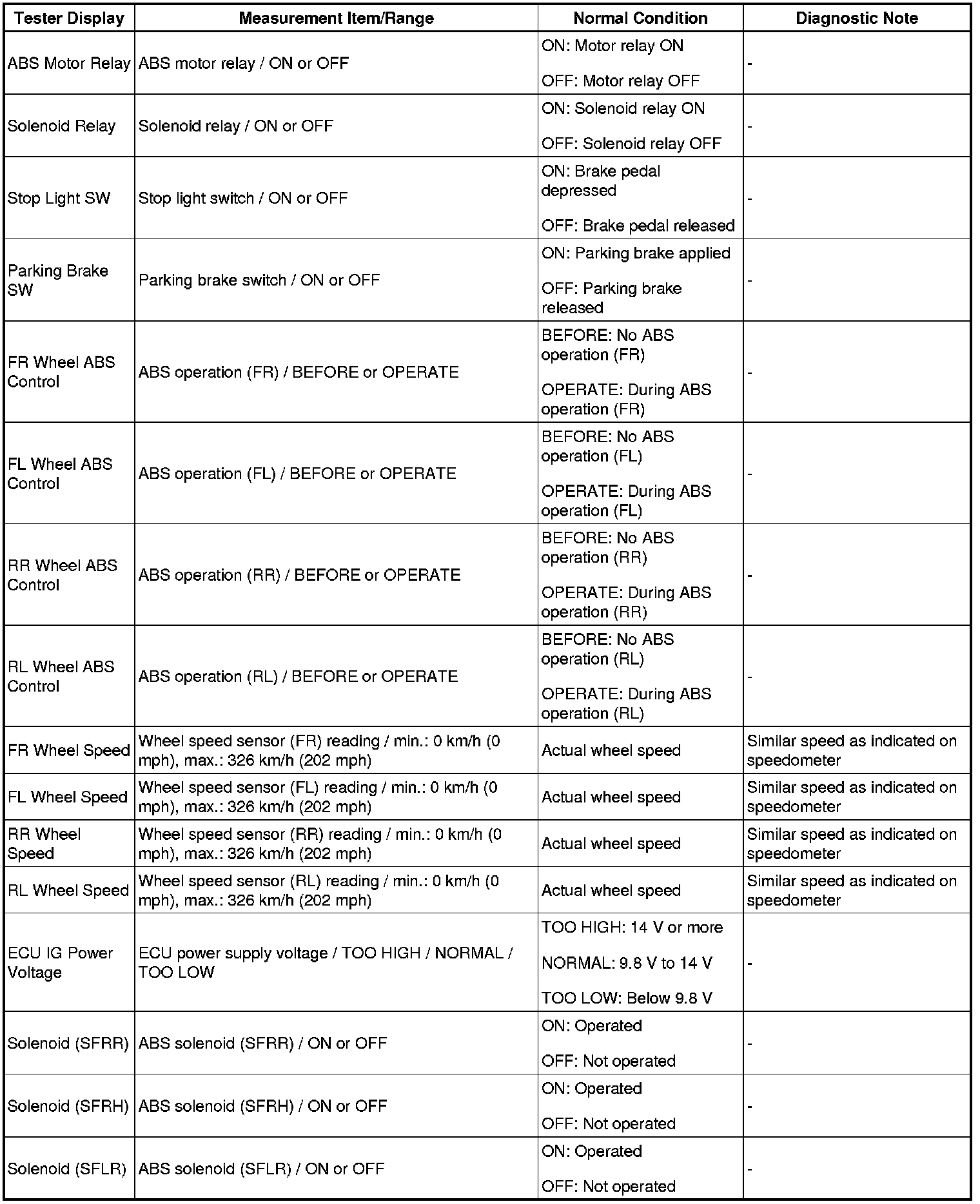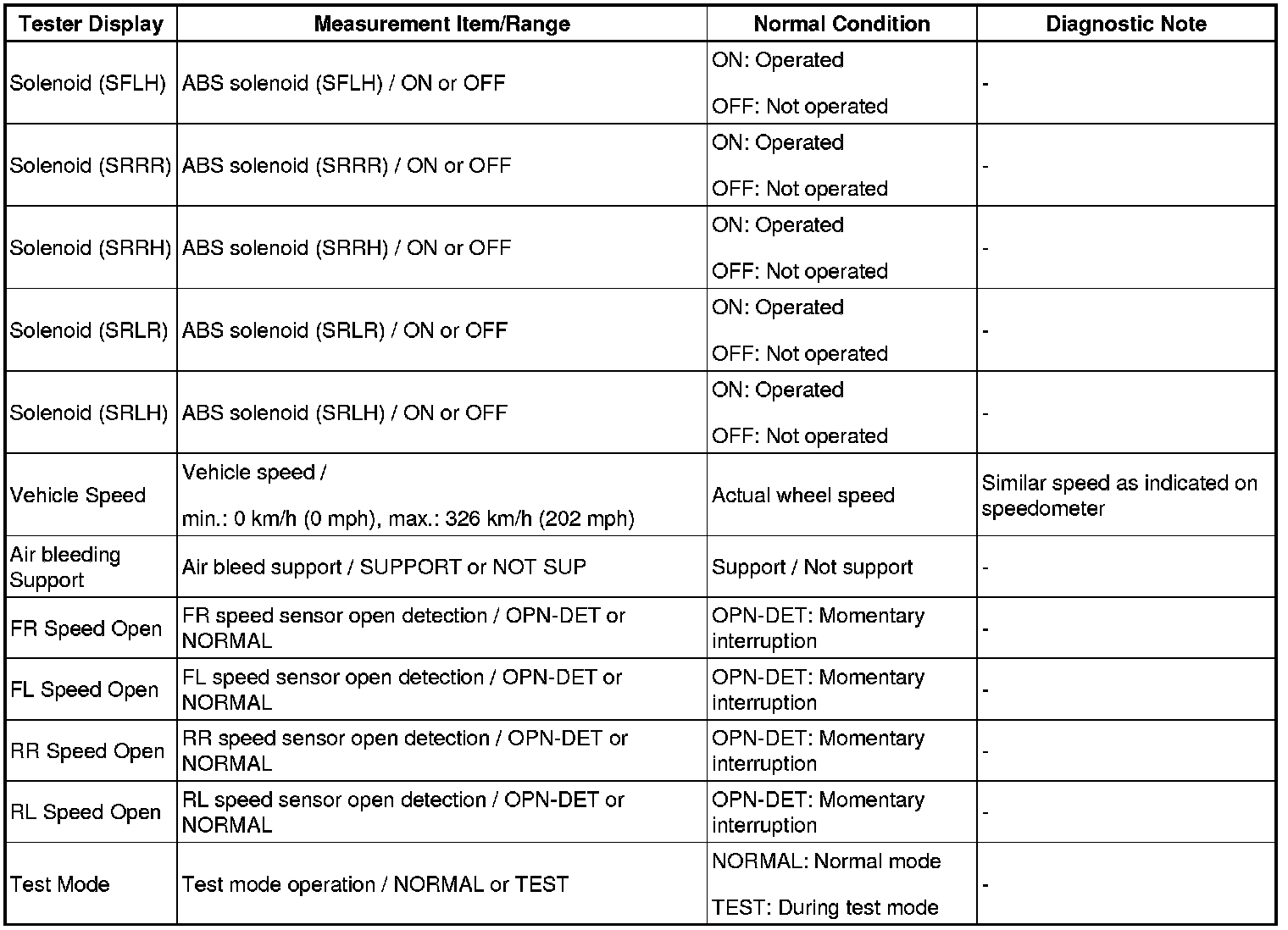 BRAKE CONTROL: ANTI-LOCK BRAKE SYSTEM: DATA LIST / ACTIVE TEST