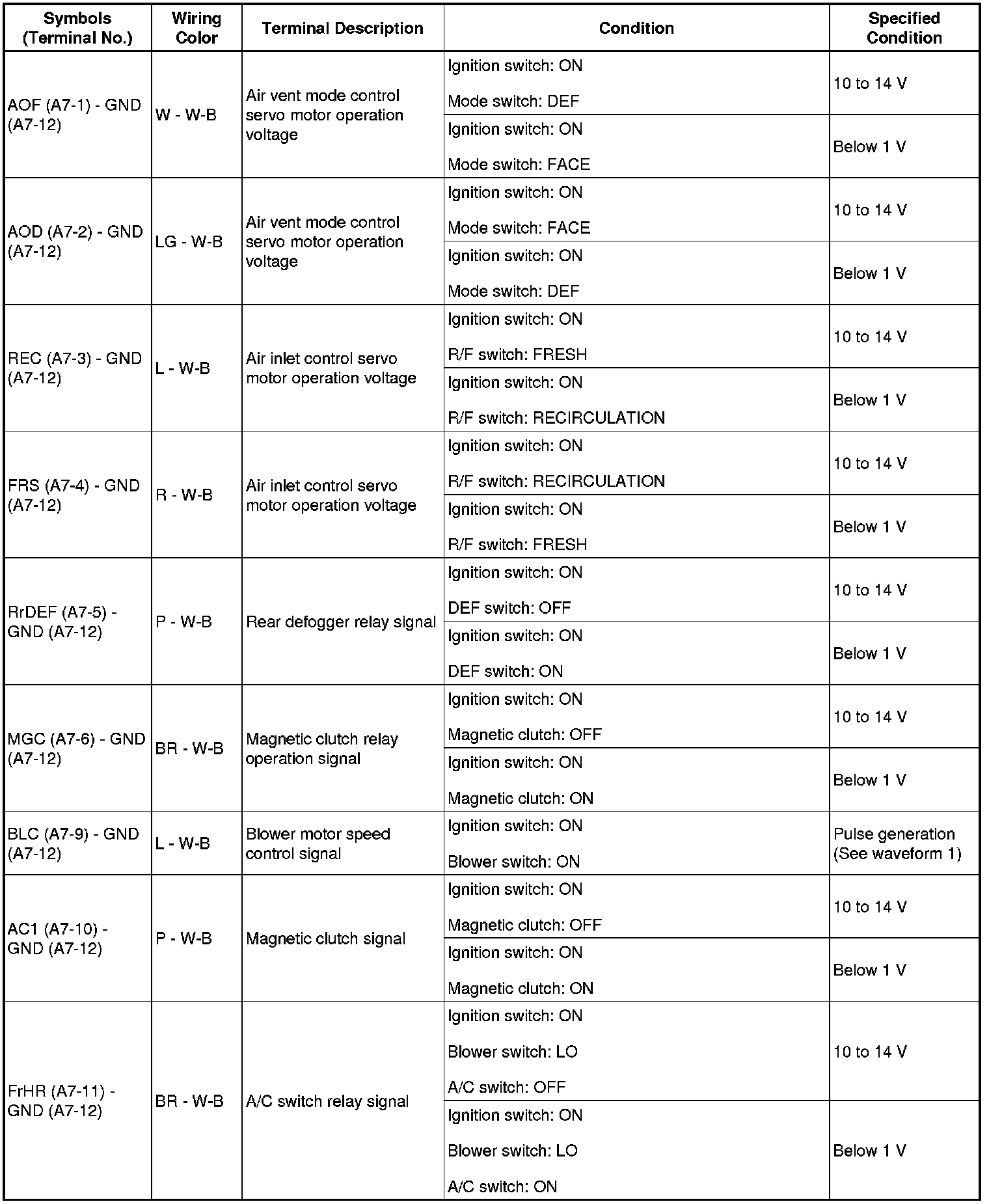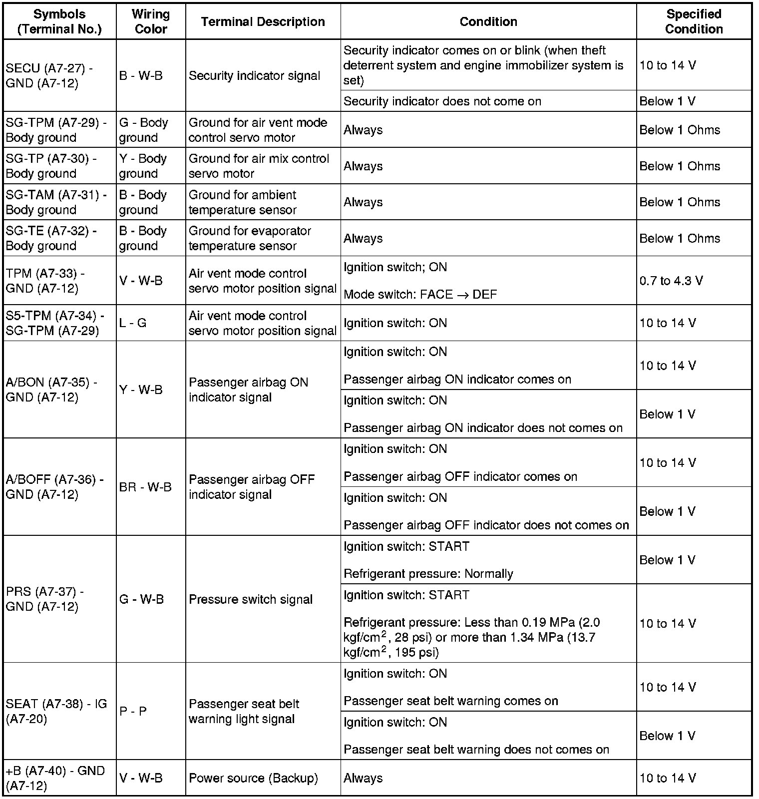 AIR CONDITIONING: AIR CONDITIONING SYSTEM: TERMINALS OF ECU