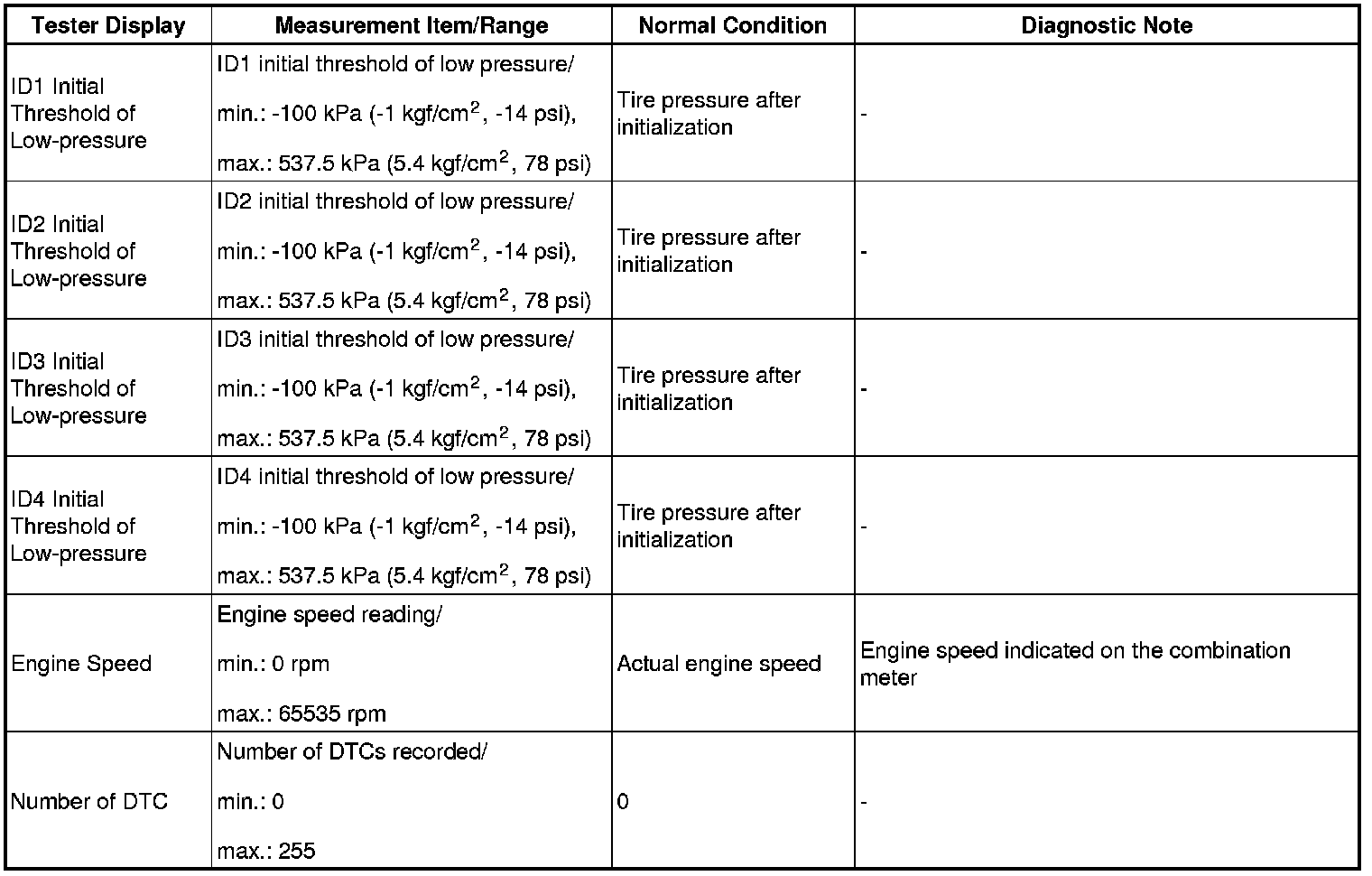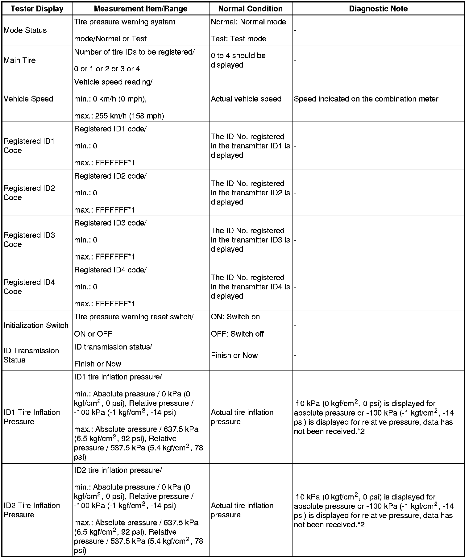 TIRE PRESSURE WARNING SYSTEM: DATA LIST / ACTIVE TEST