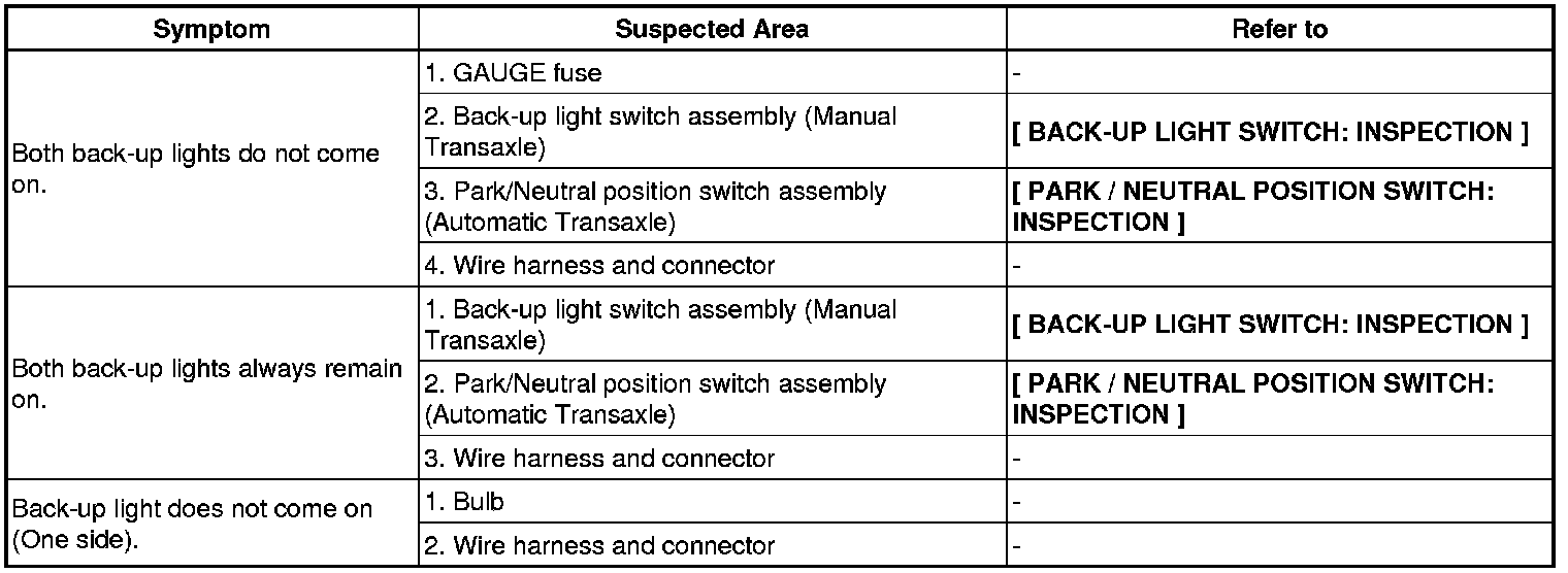 LIGHTING: LIGHTING SYSTEM: PROBLEM SYMPTOMS TABLE