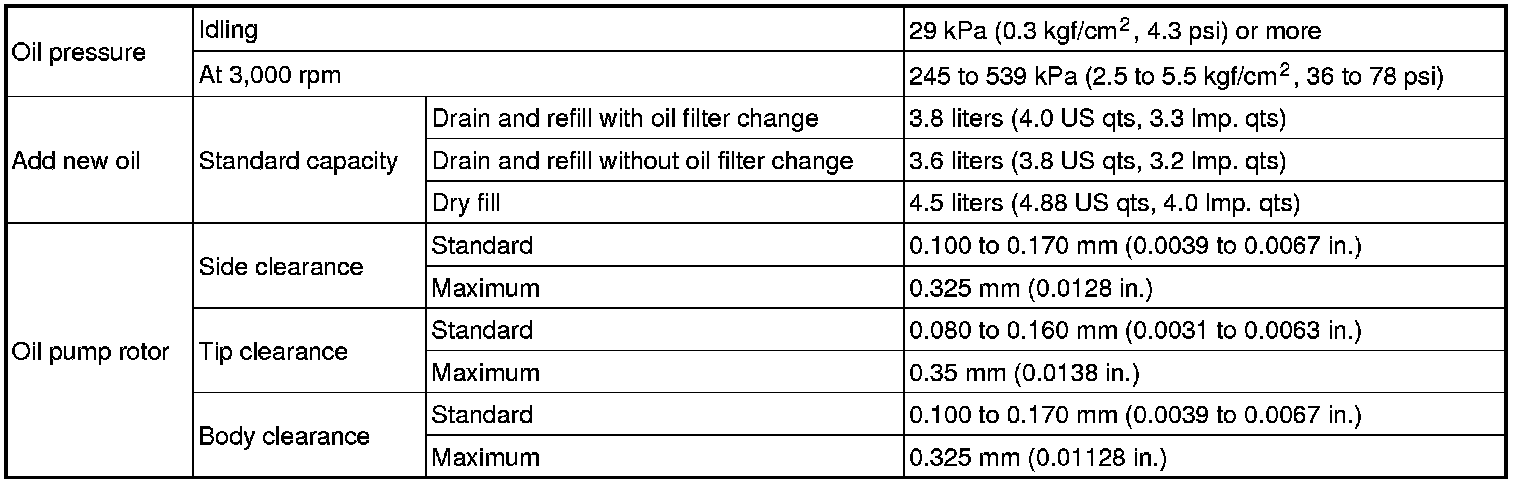2AZ-FE LUBRICATION: SERVICE DATA
