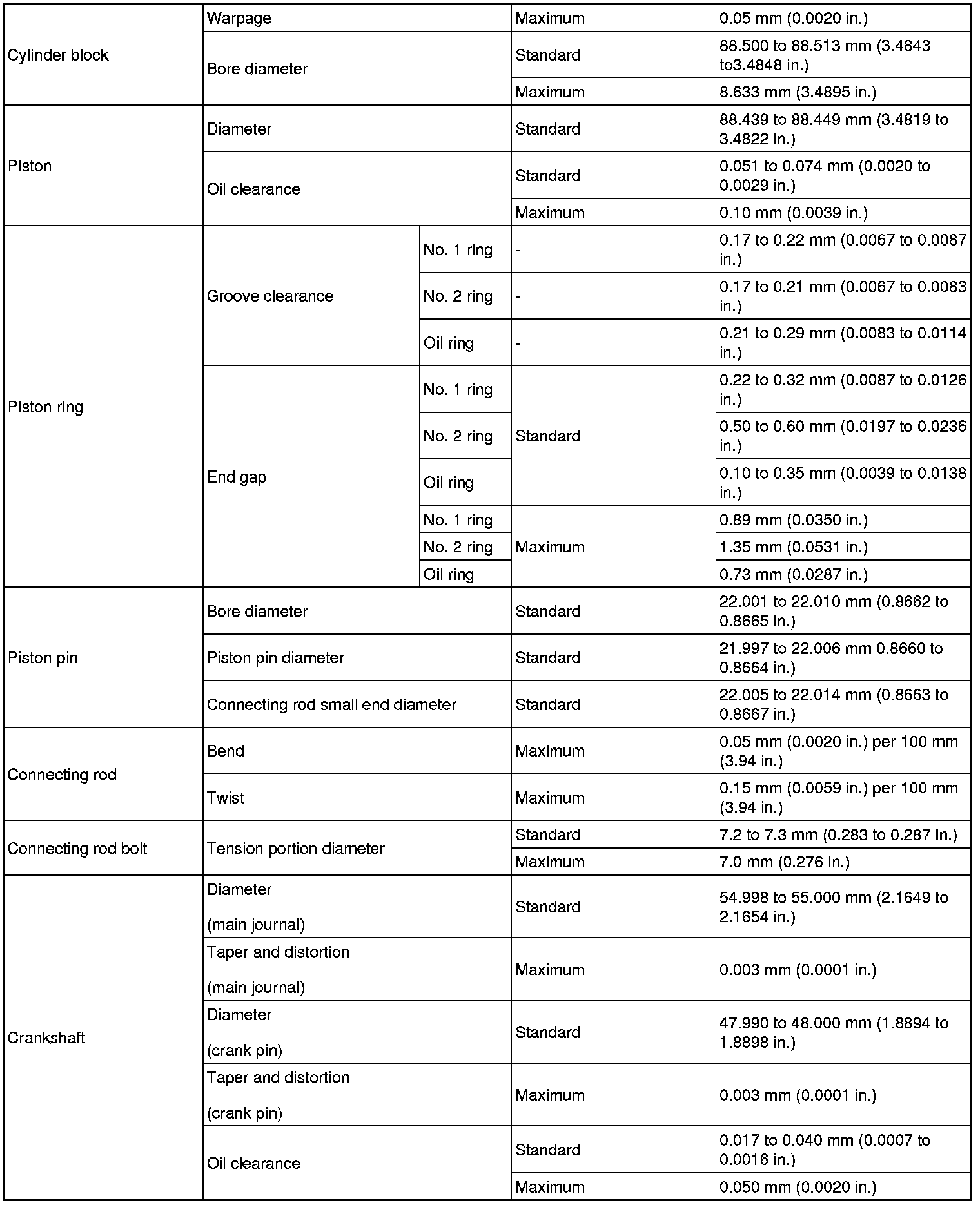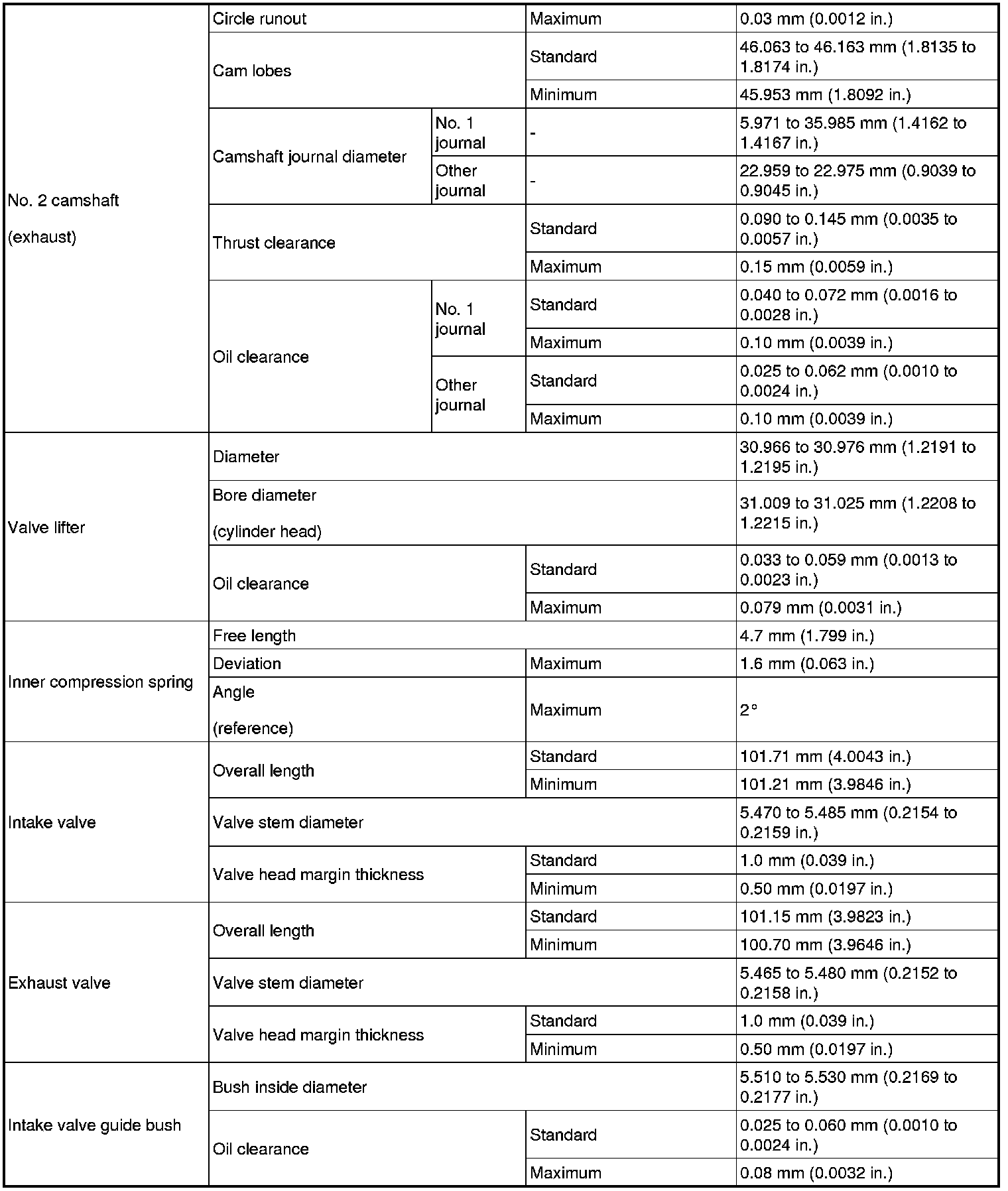 2AZ-FE ENGINE MECHANICAL: SERVICE DATA