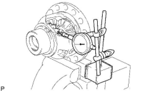 (a) Hold the differential pinion to the differential case side. Using a dial indicator, measure the differential side gear backlash.