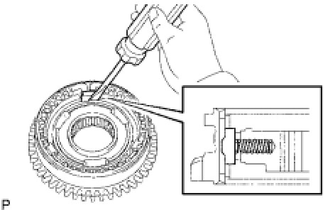 (c) Using a screwdriver, install the 3 No. 1 synchromesh shifting keys to the reverse gear.