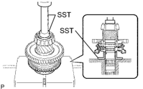 (a) Using SST and a press, press in the No. 1 transmission clutch hub to the output shaft.