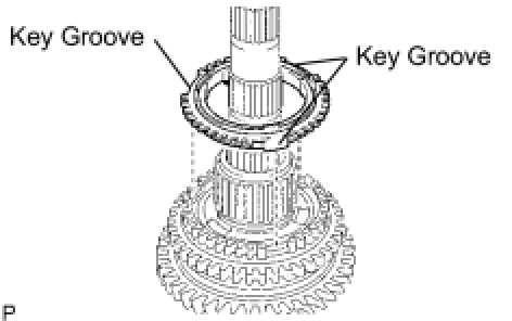 NOTICE: Align the key groove on the No. 2 synchronizer ring set with the No. 1 synchromesh shifting key.