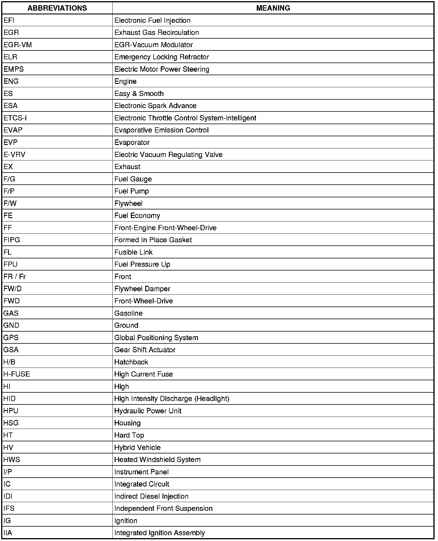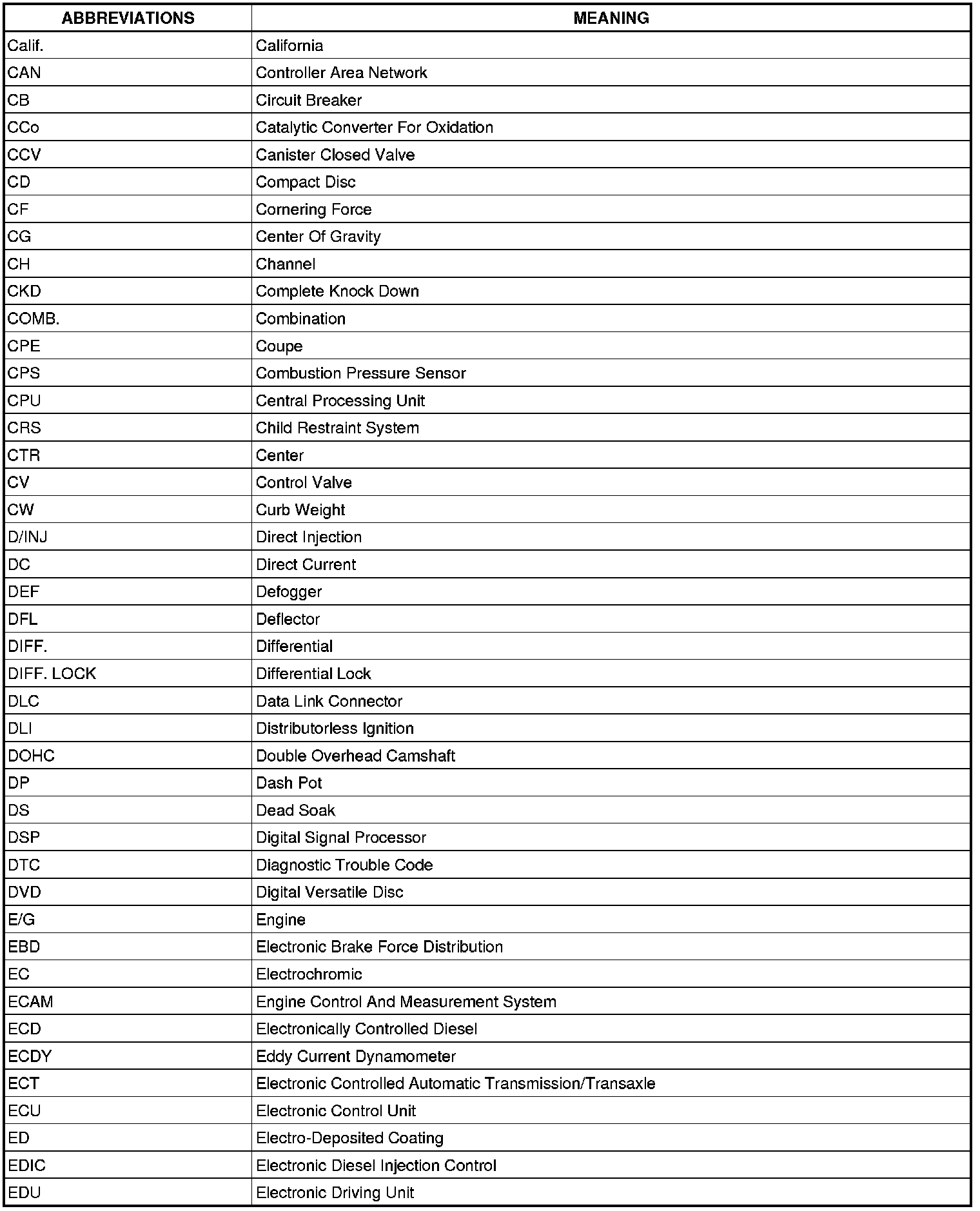 ABBREVIATIONS USED IN SERVICE PROCEDURES