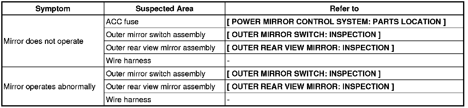 MIRROR: POWER MIRROR CONTROL SYSTEM: PROBLEM SYMPTOMS TABLE