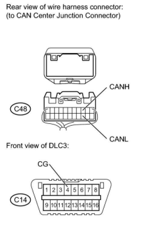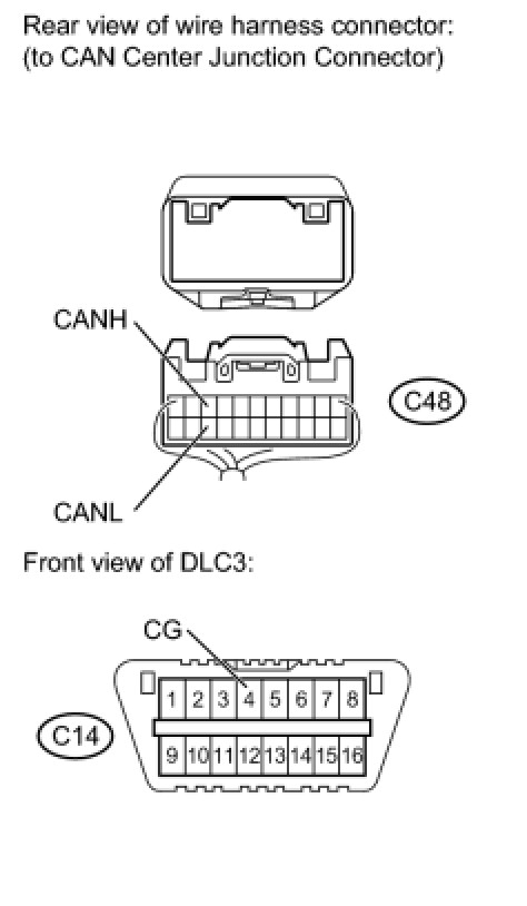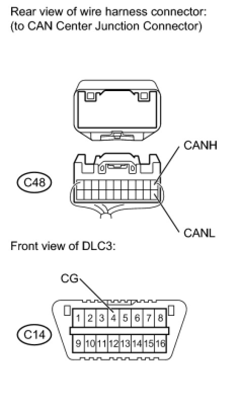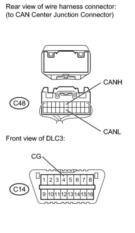 HINT: The resistance must be measured after the C48 CAN center junction connector is disconnected.