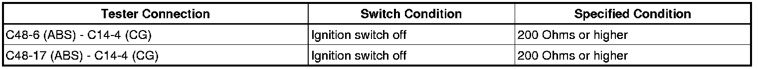 There may be a short circuit between the CAN bus line and GND when there is resistance between terminals 6 (CANH) and 4 (CG) or terminals 14 (CANL) and 4 (CG) of the DLC3.