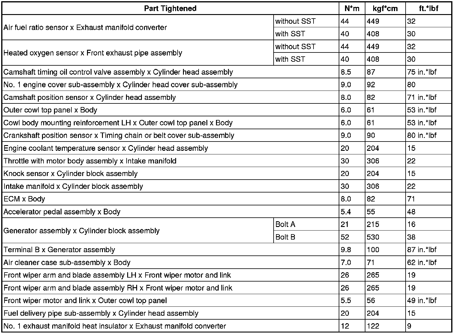 SERVICE SPECIFICATIONS: 2AZ-FE ENGINE CONTROL SYSTEM: TORQUE SPECIFICATIONS