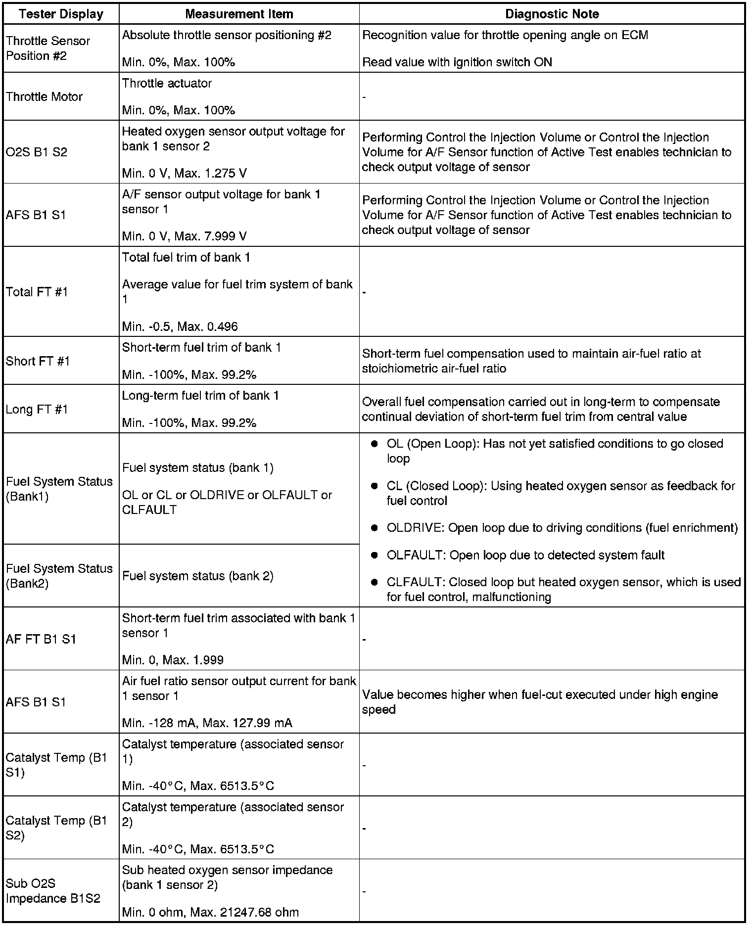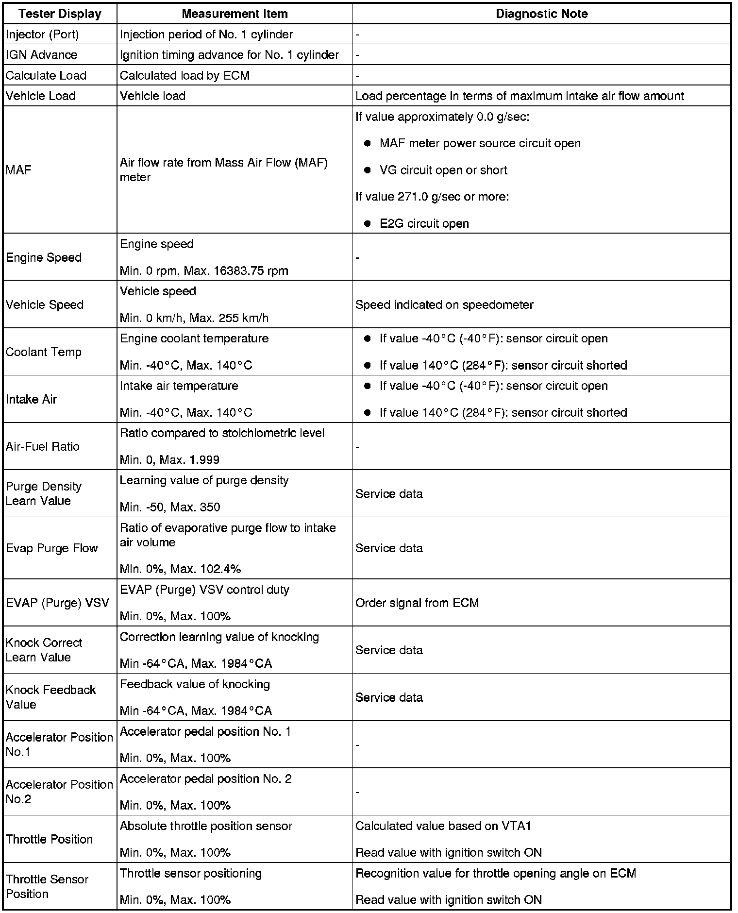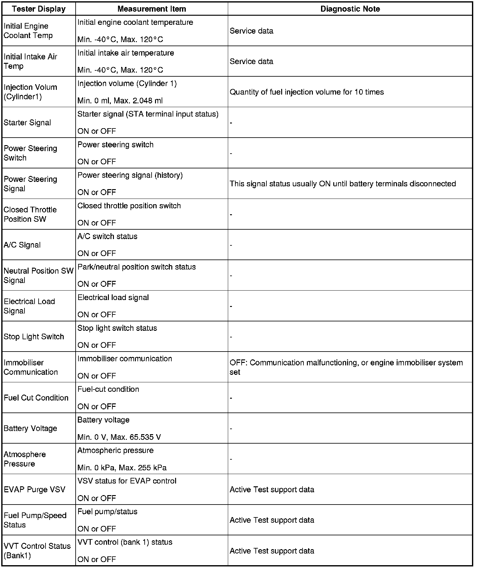 2AZ-FE ENGINE CONTROL SYSTEM: SFI SYSTEM: FREEZE FRAME DATA