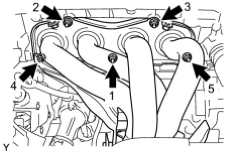 (c) Tighten the nuts of the exhaust manifold, in the order shown in the illustration, through a new gasket.