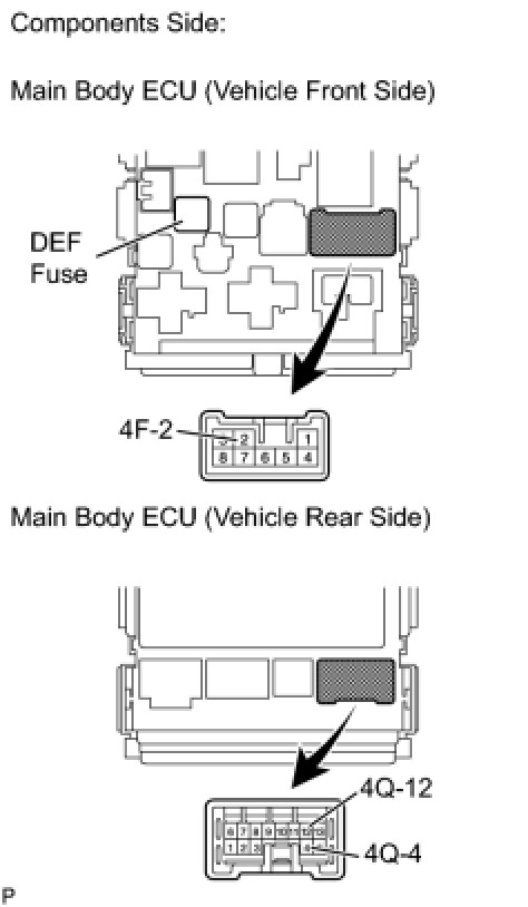 (g) Using a voltmeter, measure the voltage between terminal 4F-2 of the main body ECU connector and body ground.
