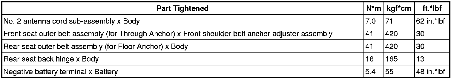 SERVICE SPECIFICATIONS: INTERIOR: TORQUE SPECIFICATIONS