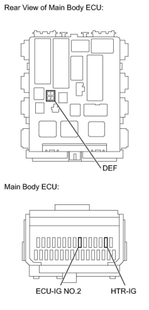 (a) Remove the DEF, ECU-IG NO. 2 and HTR-IG fuses from the main body ECU.