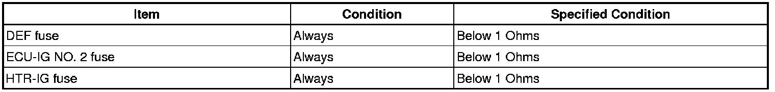1. INSPECT FUSES (DEF, ECU-IG NO. 2, HTR-IG)