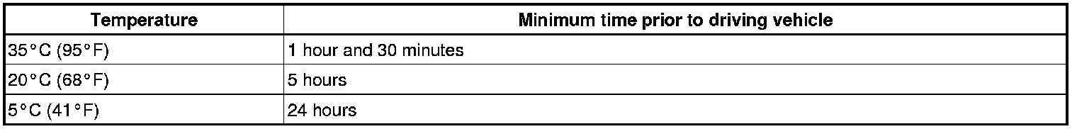 NOTICE: Do not drive the vehicle within the time limits described in the table below.