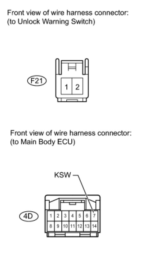 (a) Disconnect the F21 unlock warning switch connector.