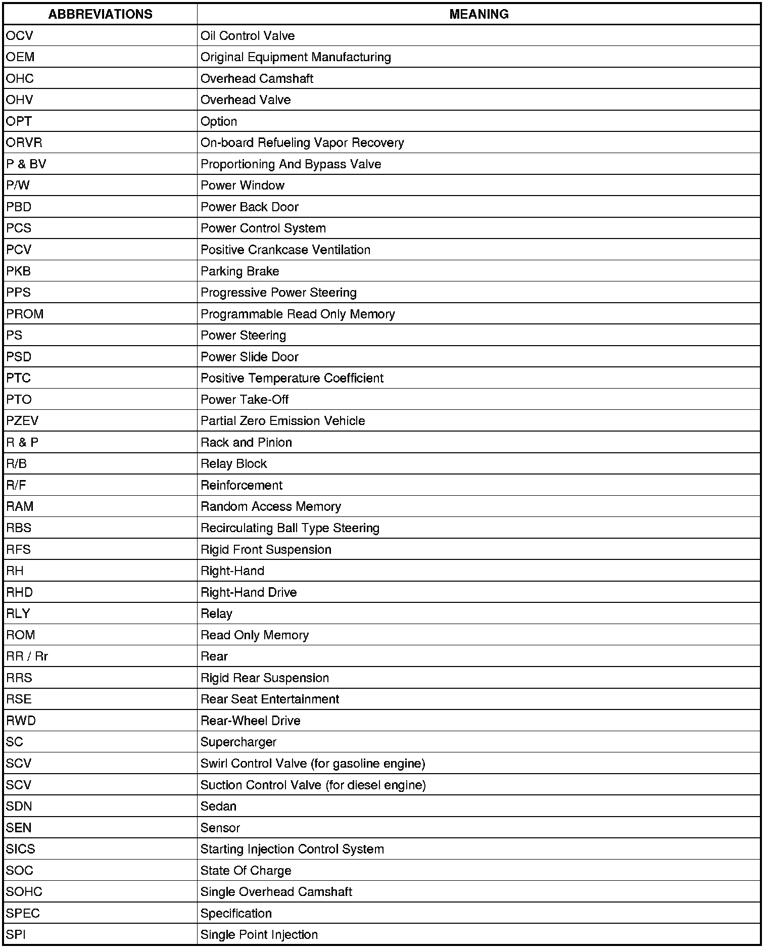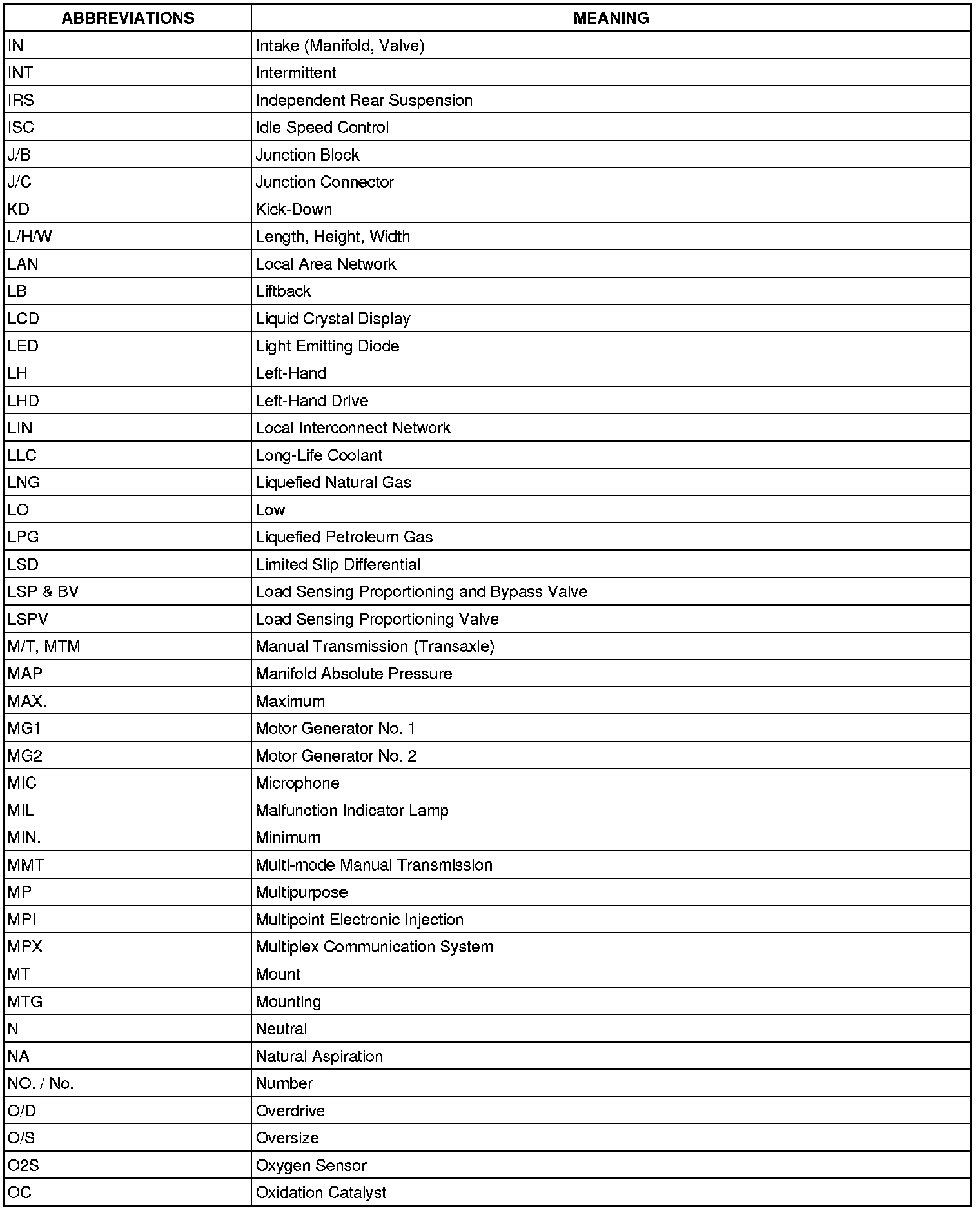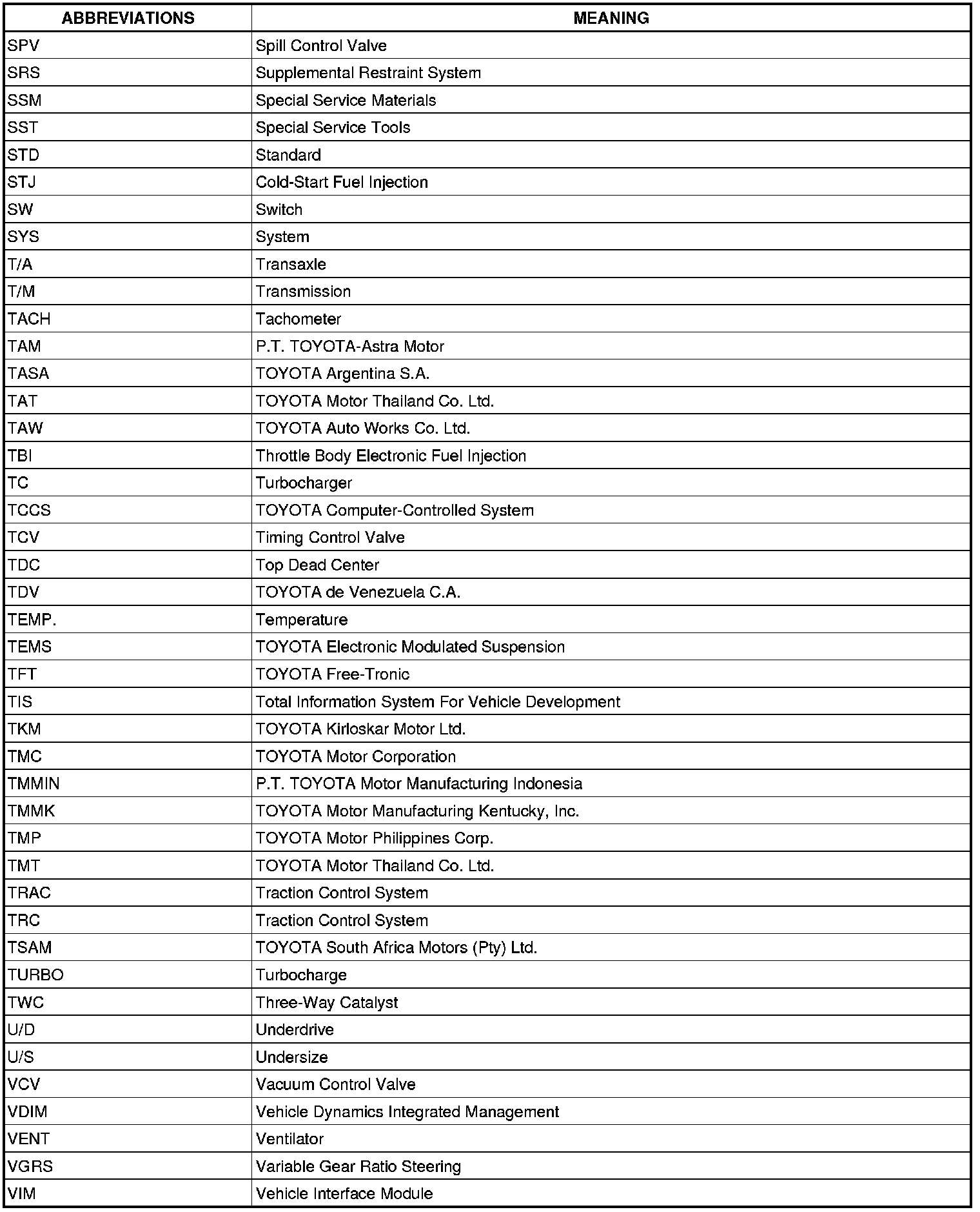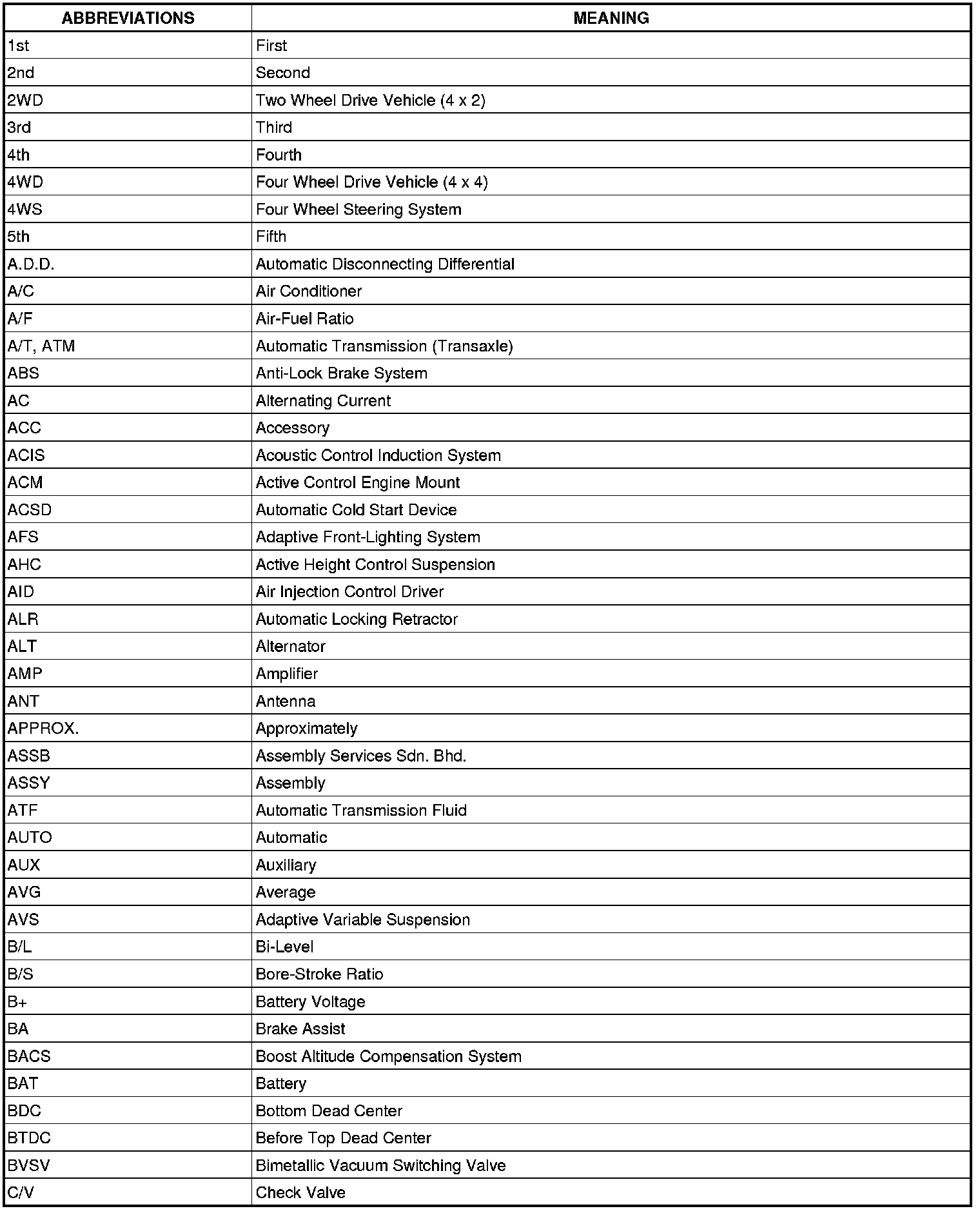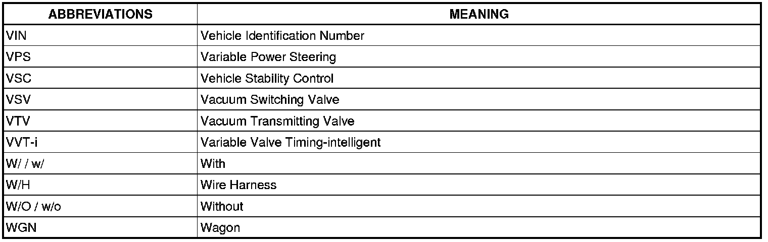 Terms - Abbreviations Used In Service Procedure