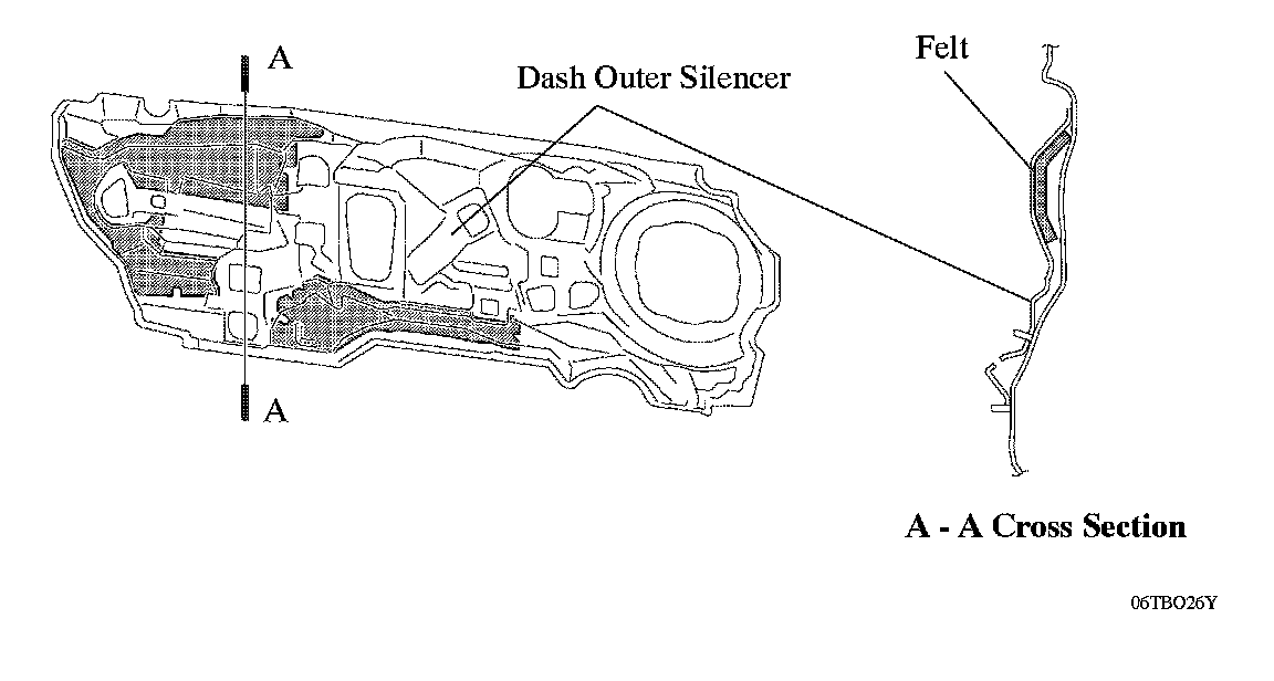^ A two-layer construction silencer is provided in the outer side of the dash panel, reducing the engine noise in the vehicle interior.