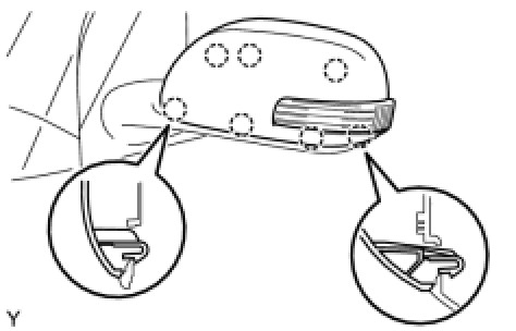 Disengage the 7 claws and remove the outer mirror cover from the outer rear view mirror assembly.