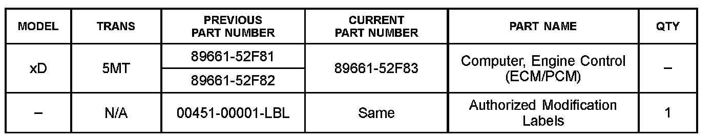 ^ Authorized Modification Labels may be ordered in packages of 25 from the Materials Distribution Center (MDC) through Dealer Daily - Dealer Support Materials Orders.