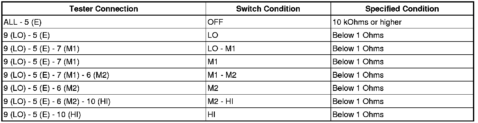 (1) Measure the resistance according to the value(s) in the table below.