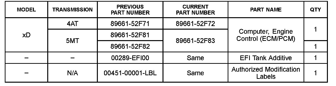 ^ Authorized Modification Labels may be ordered in packages of 25 from the Materials Distribution Center (MDC) through Dealer Daily - Dealer Support Materials Orders.