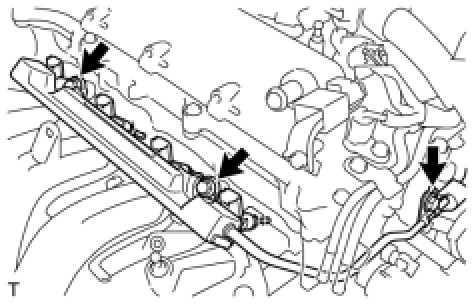 (a) Install the fuel delivery pipe with the 4 fuel injectors, then provisionally install the 3 bolts.