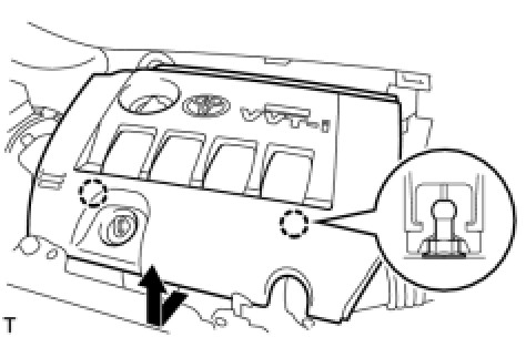 (a) First, lift up the rear of the No. 2 cylinder head cover to disengage the 2 fittings shown in the illustration.