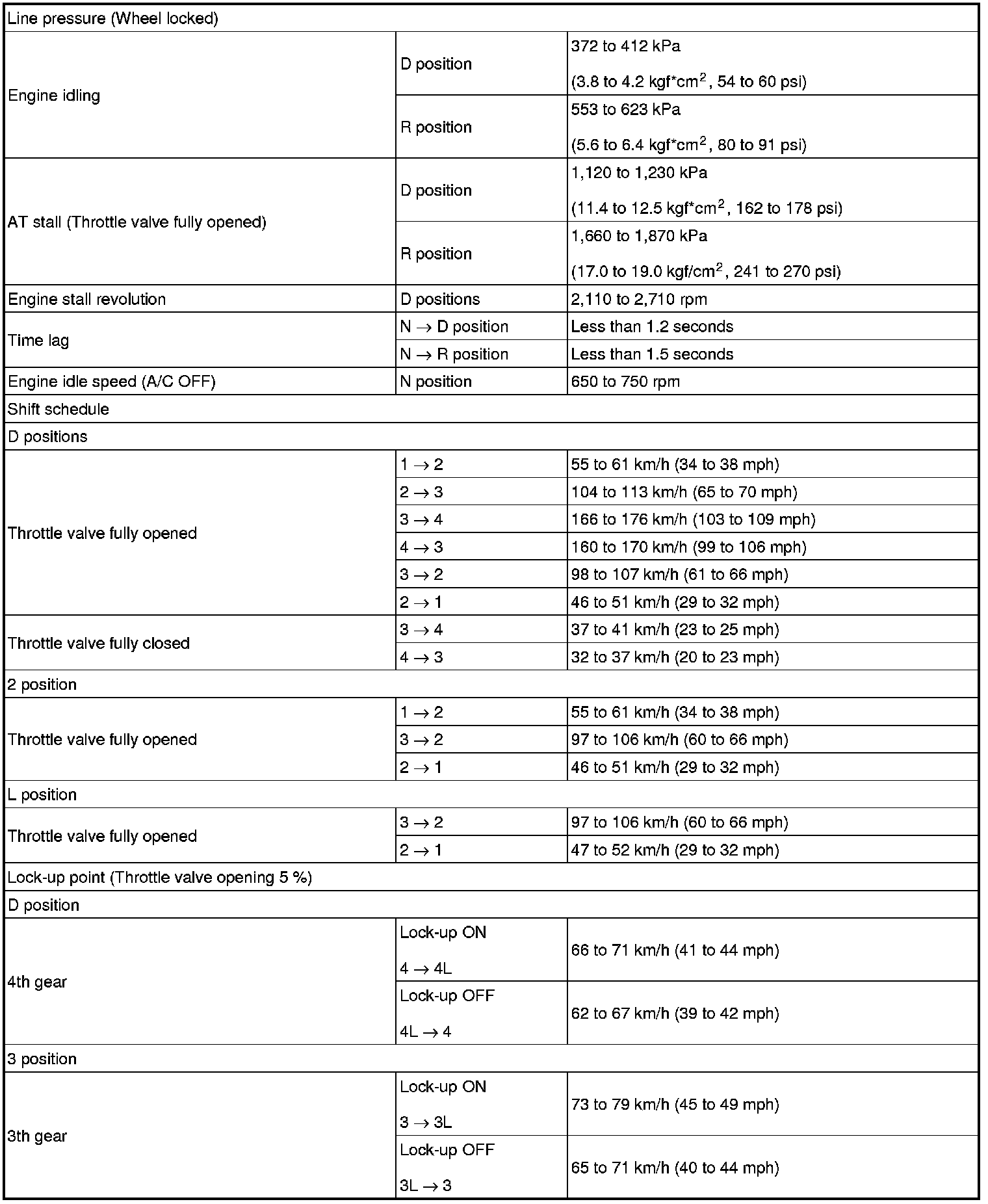 SERVICE SPECIFICATIONS: U341E AUTOMATIC TRANSAXLE: SERVICE DATA