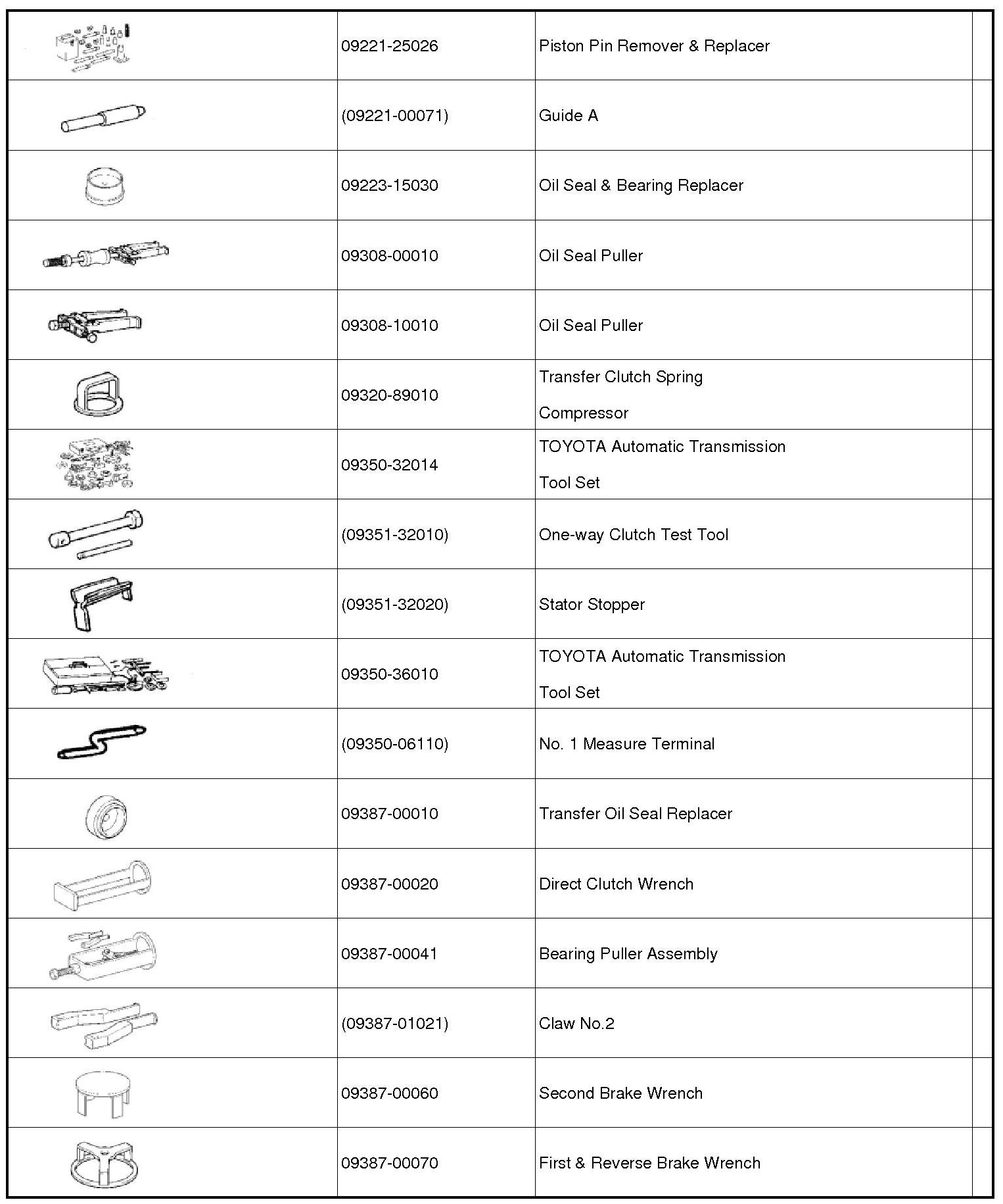 PREPARATION: U341E AUTOMATIC TRANSAXLE: SST