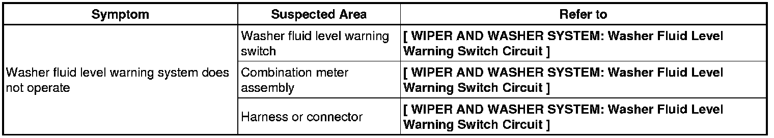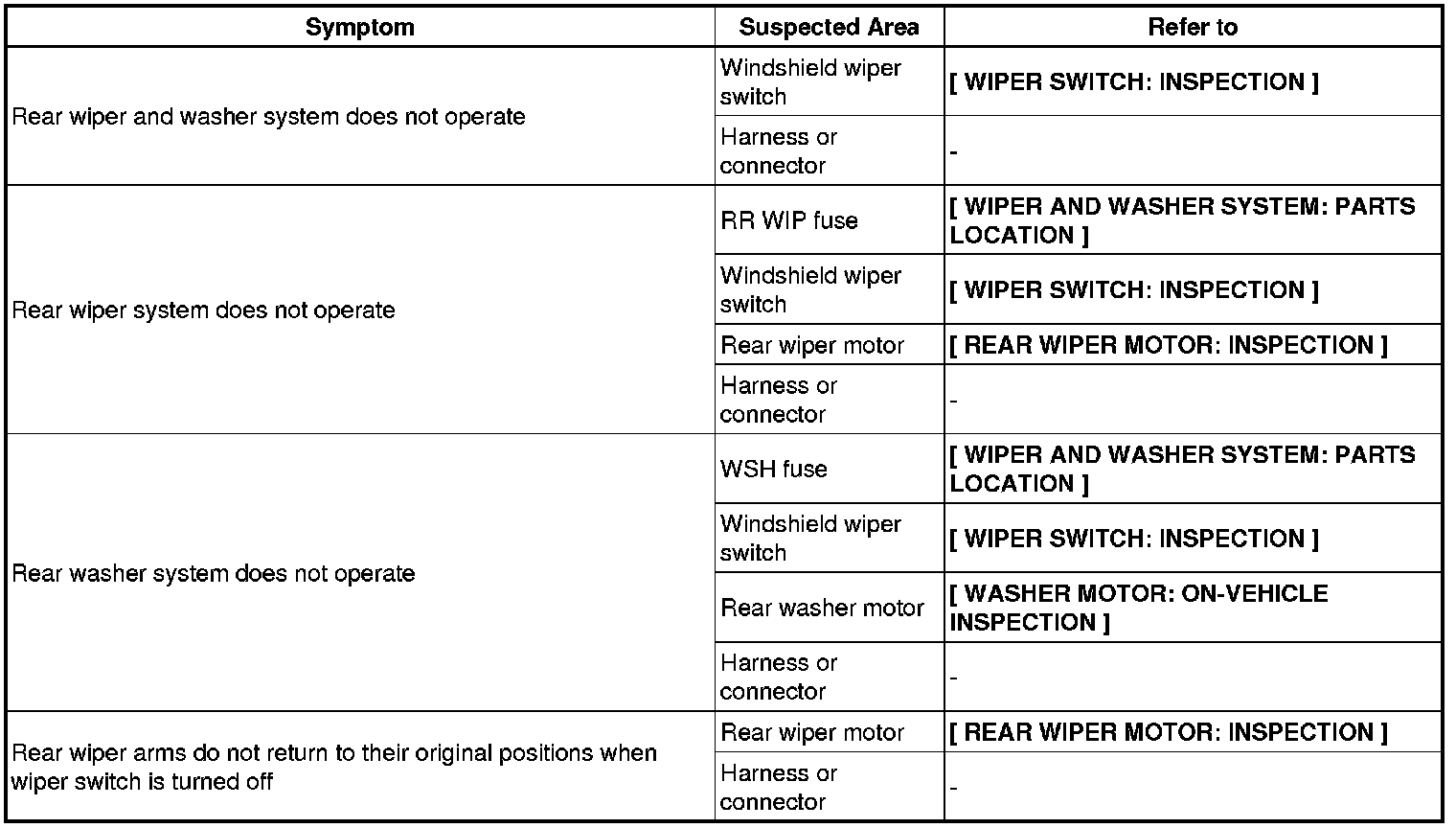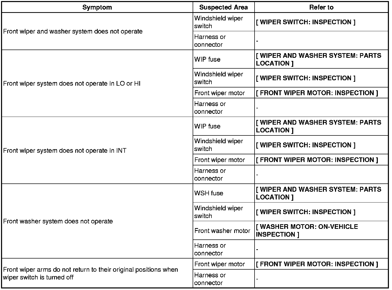 WIPER AND WASHER: WIPER AND WASHER SYSTEM: PROBLEM SYMPTOMS TABLE