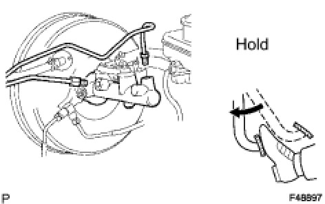 (e) Using SST, connect the 2 brake lines to the master cylinder.