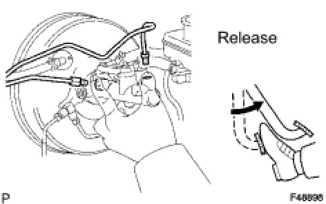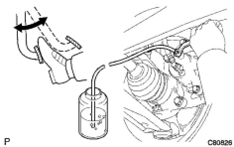 (c) Depress the pedal several times, and then loosen the bleeder plug with the pedal depressed.