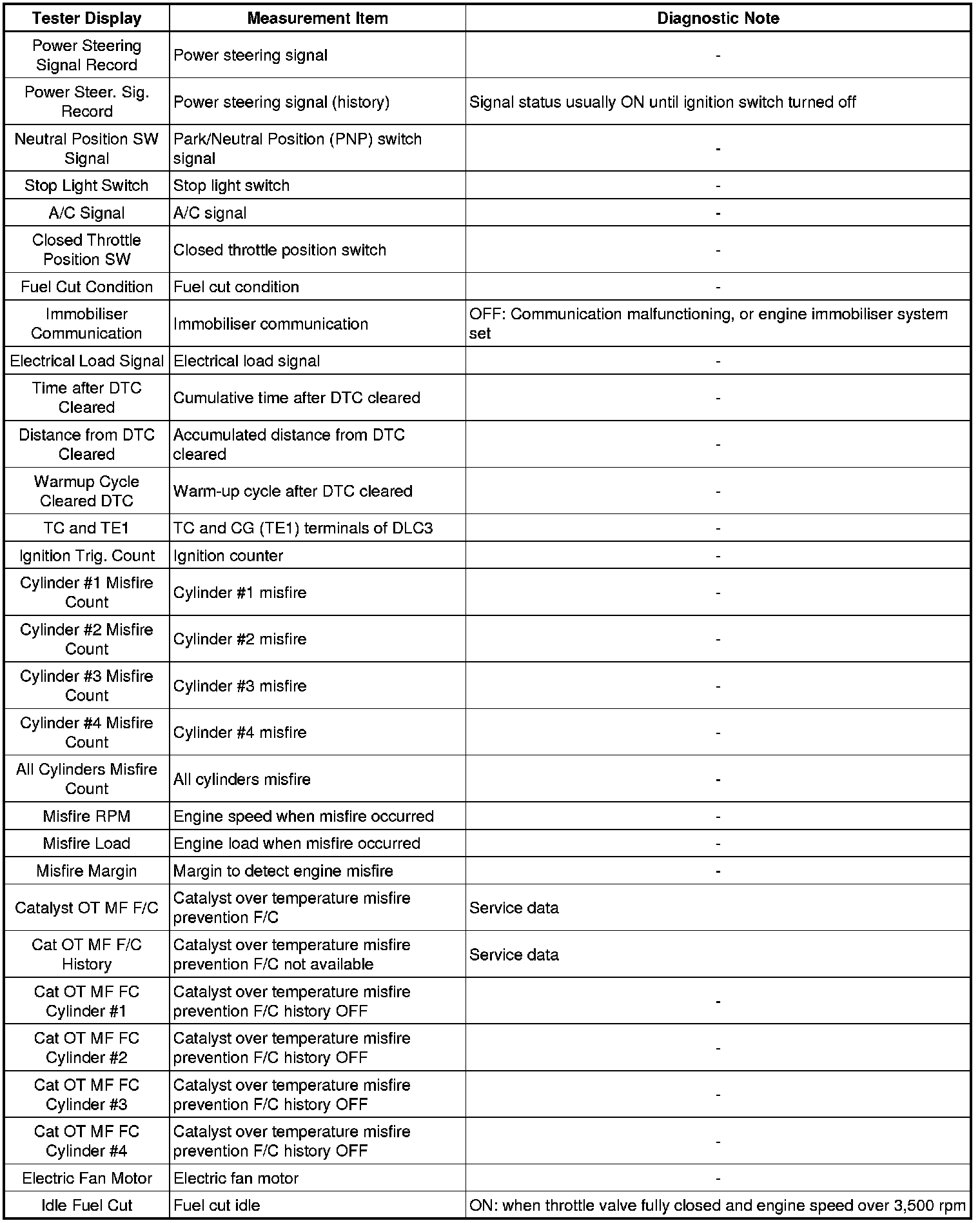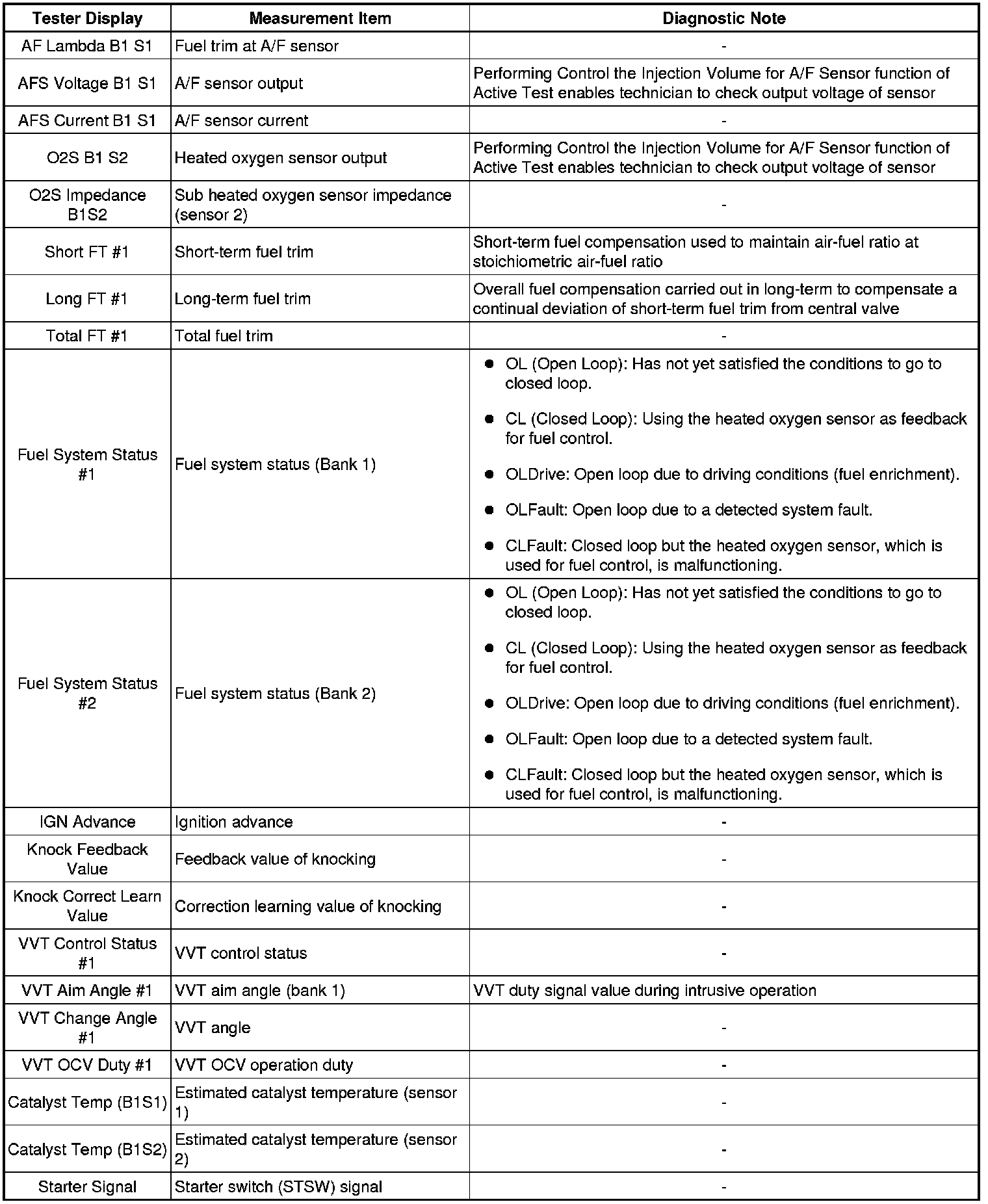 * The ECM records vehicle and driving condition information as freeze frame data when a malfunction is detected. When troubleshooting, it can help determine if the vehicle was running or stopped, the engine was warmed up or not, the air-fuel ratio was lean or rich, and other data from the time the malfunction occurred.