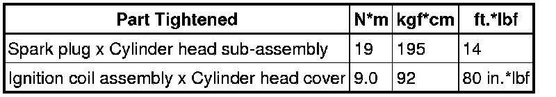 SERVICE SPECIFICATIONS: 2AZ-FE IGNITION: TORQUE SPECIFICATIONS