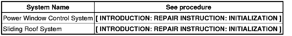 When the negative (-) battery cable is disconnected, initialize the following systems after the cable is reconnected.