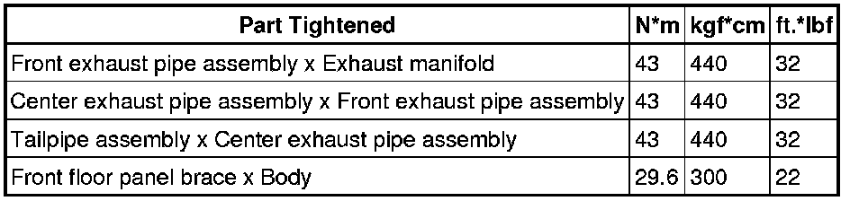 SERVICE SPECIFICATIONS: 2AZ-FE EXHAUST: TORQUE SPECIFICATIONS