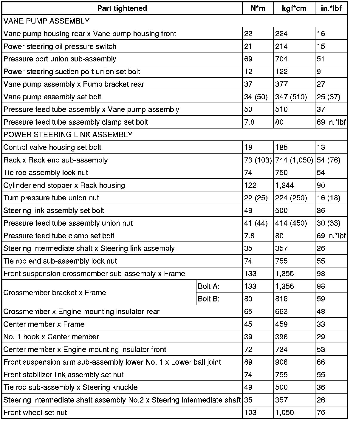 : TORQUE SPECIFICATIONS